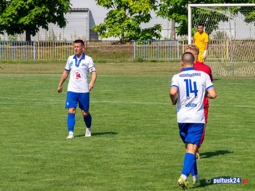 Druga połowa to trochę inne spotkanie – goście grali spokojnie i skutecznie. W 61 minucie zdobyli drugą bramkę i bardzo dobrze się bronili. Nadnarwianka atakowała, ale trochę chaotycznie i mało skutecznie. Idealnych sytuacji było niewiele, a najlepsza zakończyła się trafieniem w słupek Szymona Rudnika.