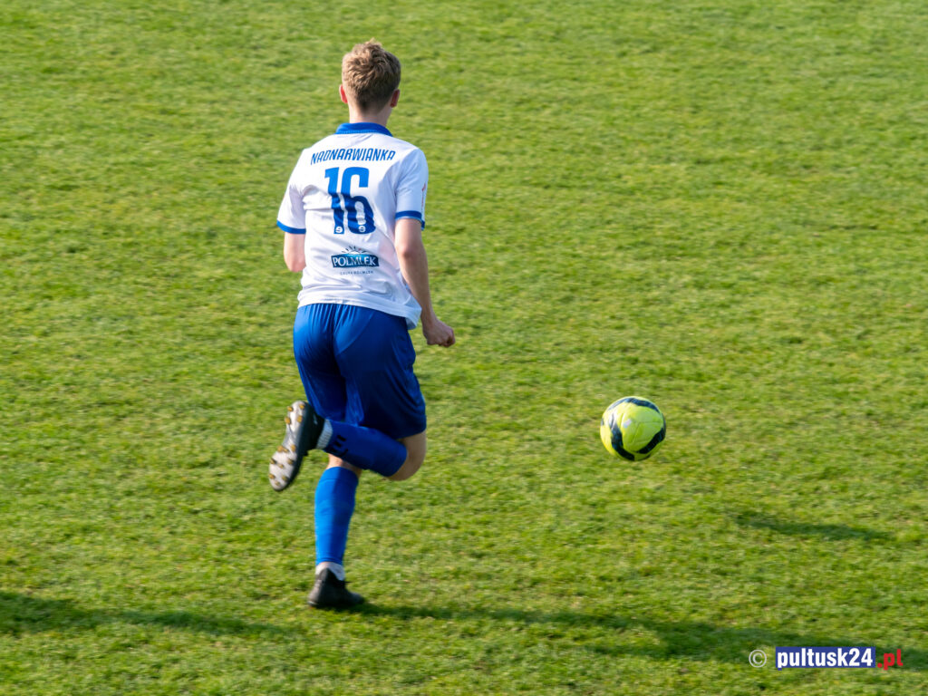 Pierwszego gola po fajnej akcji i zamieszaniu w polu karnym zdobył w 13 minucie Nico Wouters. Kolejnych kilka niezłych ataków nie zakończyło się golami, ale przewaga naszej drużyny była wyraźna. Brakowało zimnej krwi pod samą bramką. Kolejne gole padły w drugiej połowie. Już w dwie minuty po wznowieniu gry świetne podanie Dawida Sokołowskiego zamienił na równie pięknego gola Antoni Kozyra. Goście zbyt wielu szans nie mieli. Jedyną, którą zamienili na gola, był rzut wolny z 67 minuty. Przez chwilę mogło się wydawać, że gol kontaktowy pozwolił gościom złapać wiatr w żagle, ale nie takie numery z chłopakami z Pułtuska! Strata bramki nie dość, że ich nie podłamała, to jeszcze zmotywowała do ataków. W 77 minucie po świetnym rajdzie prawą stroną Szymon Rudnik strzelił na 3-1, a w 80 minucie karnego (po zagraniu ręką w polu karnym) wykorzystał Nico Wouters. Warto odnotować, iż w meczu z Makowianką swój debiut przed własną publicznością mieli trzej zawodnicy: Michał Kornacki (tydzień temu debiutował w meczu z Serockiem i strzelił bramkę), Mateusz Żołnierzak i Gerard Gemza. Debiut wypadł dobrze, co ucieszyło zarówno zawodników, jak i gorąco kibicujących rodziców!
