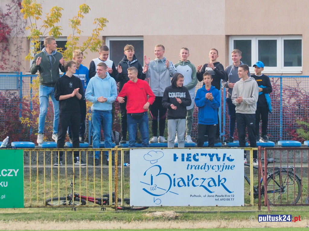 Brawa należą się też kibicom – bardzo licznym i głośnym z Pułtuska, a także dobrze przygotowanej do śpiewania grupie z Makowa. Atmosfera dzięki nim wszystkim na stadionie była bardzo wyjątkowa. Dawno aż tak licznych i głośnych śpiewów obu stron w Pułtusku nie było. Cieszy – zwłaszcza Prezesa Klubu, że wśród kibiców coraz więcej jest młodzieży! To dobry prognostyk na przyszłość.